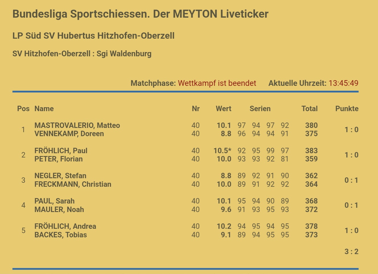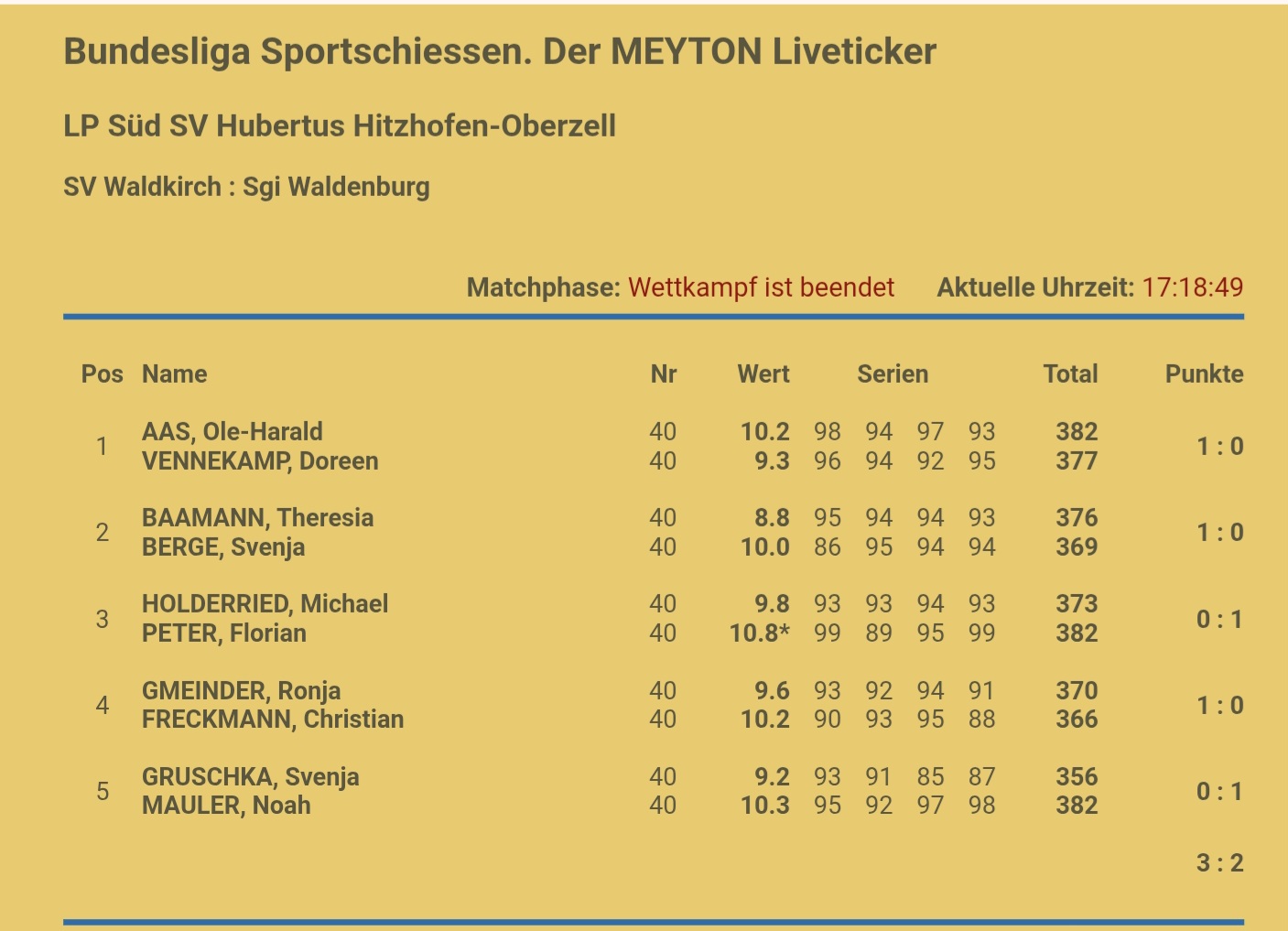 Durch die 19.10. sollte besser werden, konnte dann aber am Schießstand nicht umgesetzt werden. Auch hier mussten sich die Schützen der SGi Waldenburg dem Gastgeber dem SV Hubertus Hitzhofen-Oberzell 2:3 geschlagen geben.